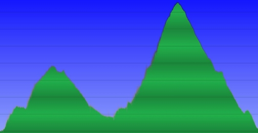 Hunting Hollow entrance, up Steer Ridge Road, down via Willson Camp / Bowl Trail / Lyman Willson. Flat final mile along Hunting Hollow Road chopped off. Steep bit - 1750 feet in 2.2 miles. |