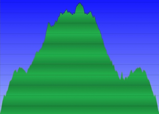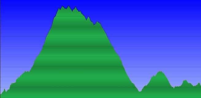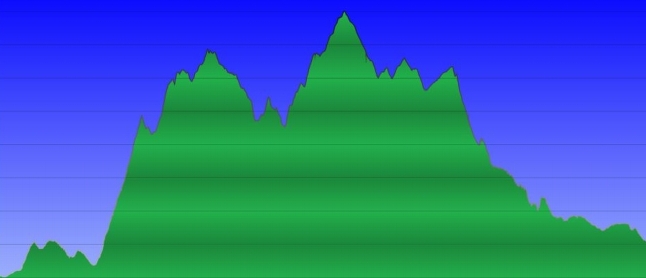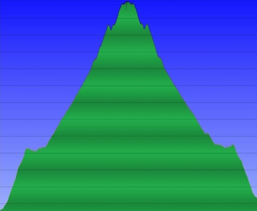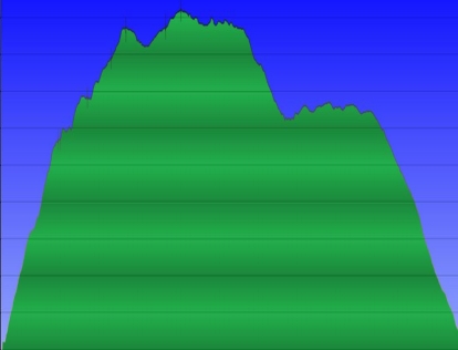 From Rhus Ridge. Some altimeter drift is evident - this should be symettric. Steep bits at beginning and near top, with fairly constant grade in the middle. |