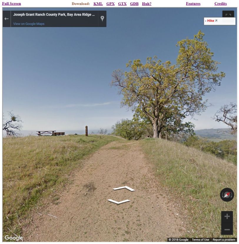 Drag him to a spot outlined in blue, which may include the trails, and bring up interactive streetview with the Google provided controls for navigation and viewing:
